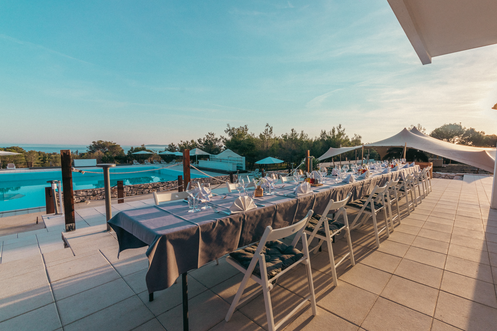 Explore the multiple possibilites to our venue rental deals. We have multiple venues available for your event: an spectacular Amphitheatre by the sea, the Pavilion, the south deck with a charming sunset view, a turquoise beach with a cocktail bar, and an attractive pool with a restaurant & bar area that have a beautiful 360° view of the Adriatic Sea!  Explore our venue rental deals.